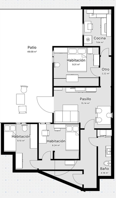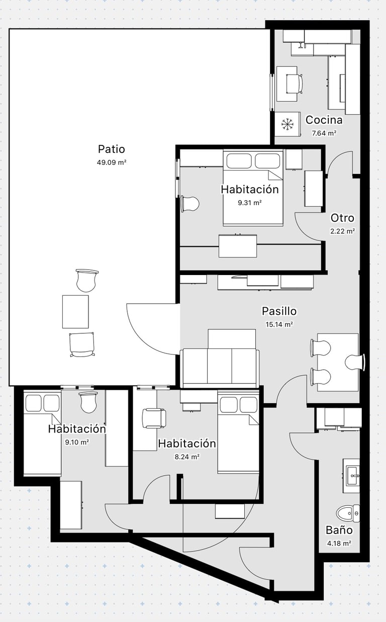 La vivienda dispone de 3 dormitorios, un baño completo, salón-comedor muy luminoso y terraza o patio interior. La cocina está totalmente amueblada y cuenta con armarios empotrados en pasillos y estancias.